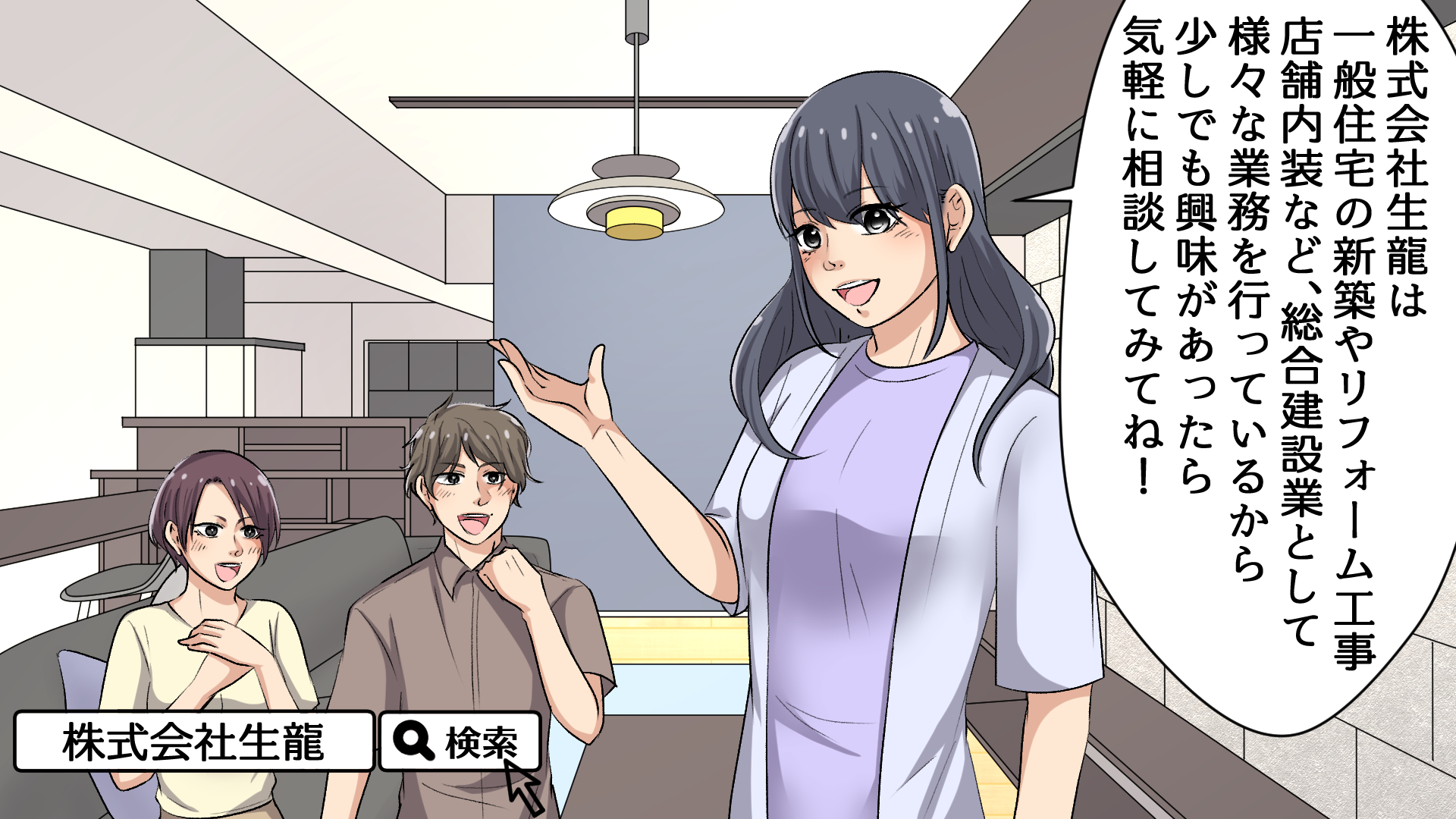 株式会社生龍は、建設現場における木工造作工事を中心に、一般住宅の新築・リフォーム工事、店舗内装など、